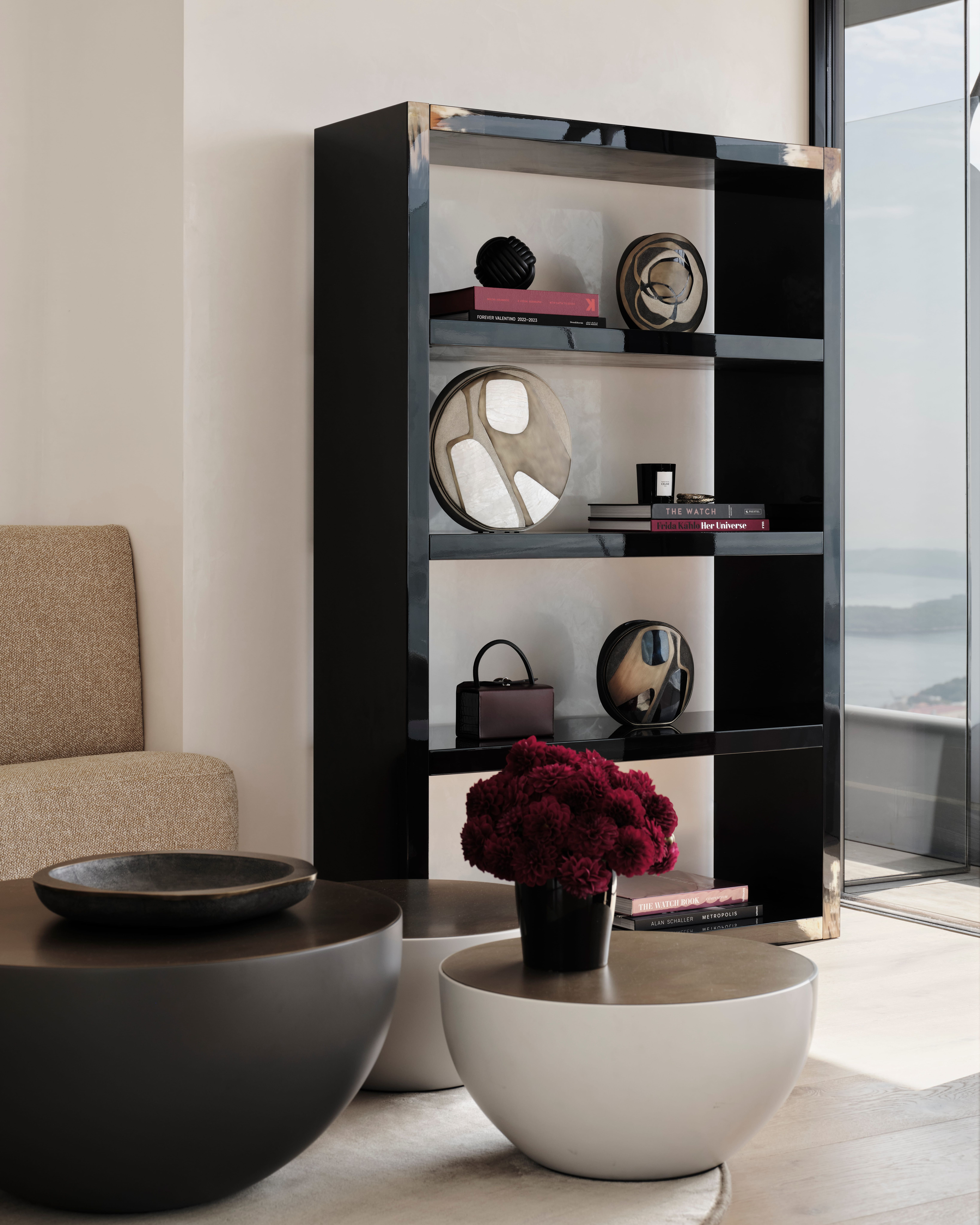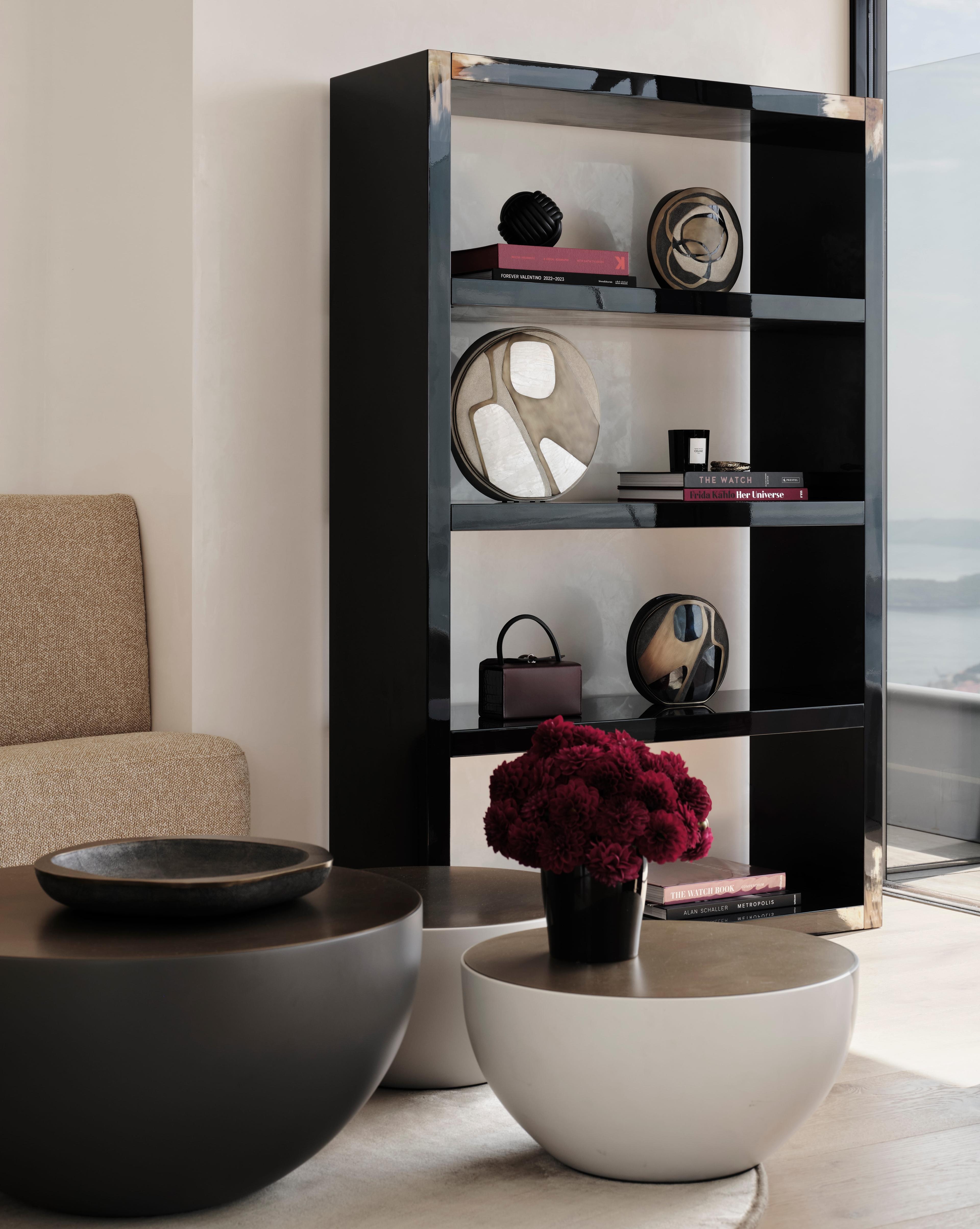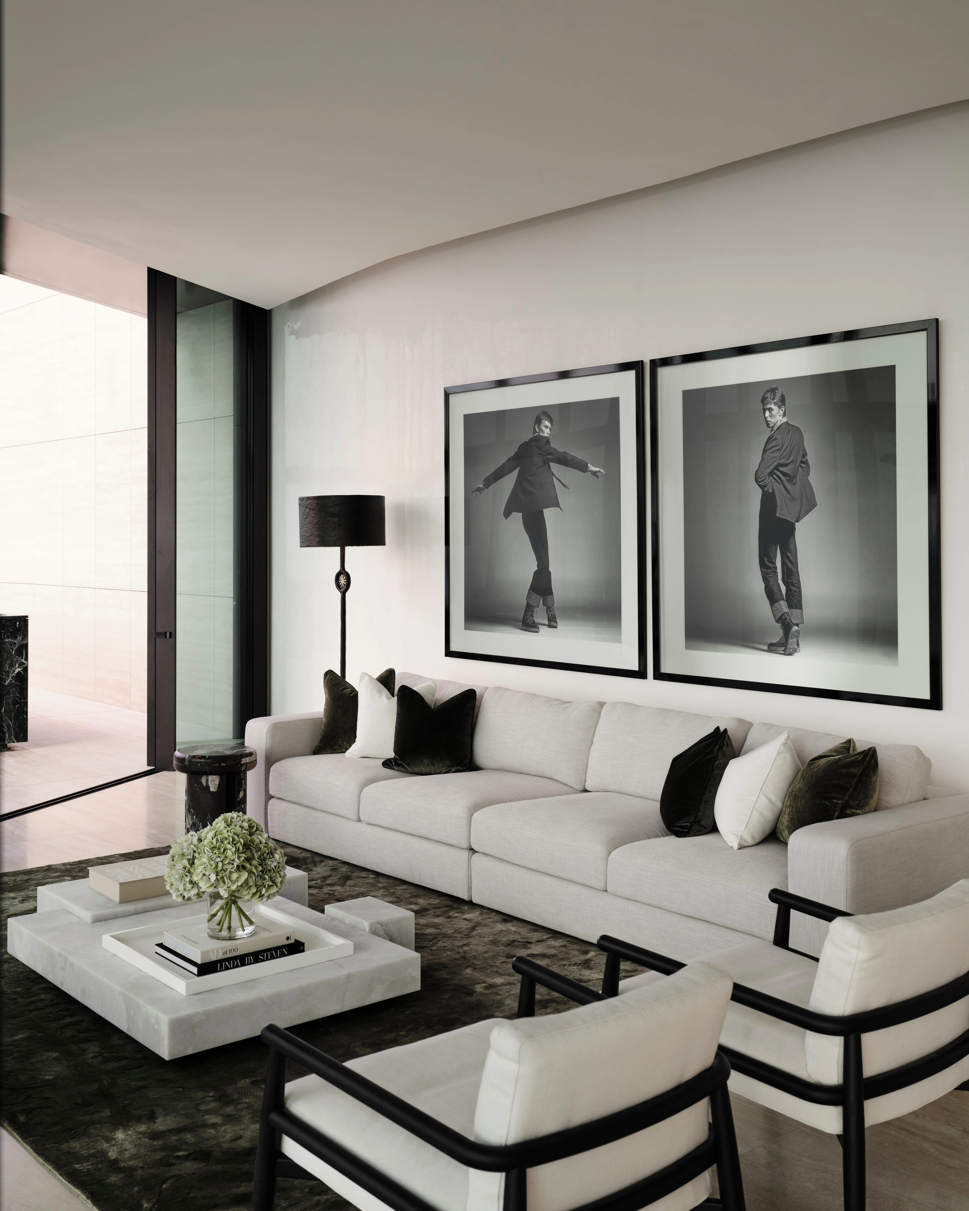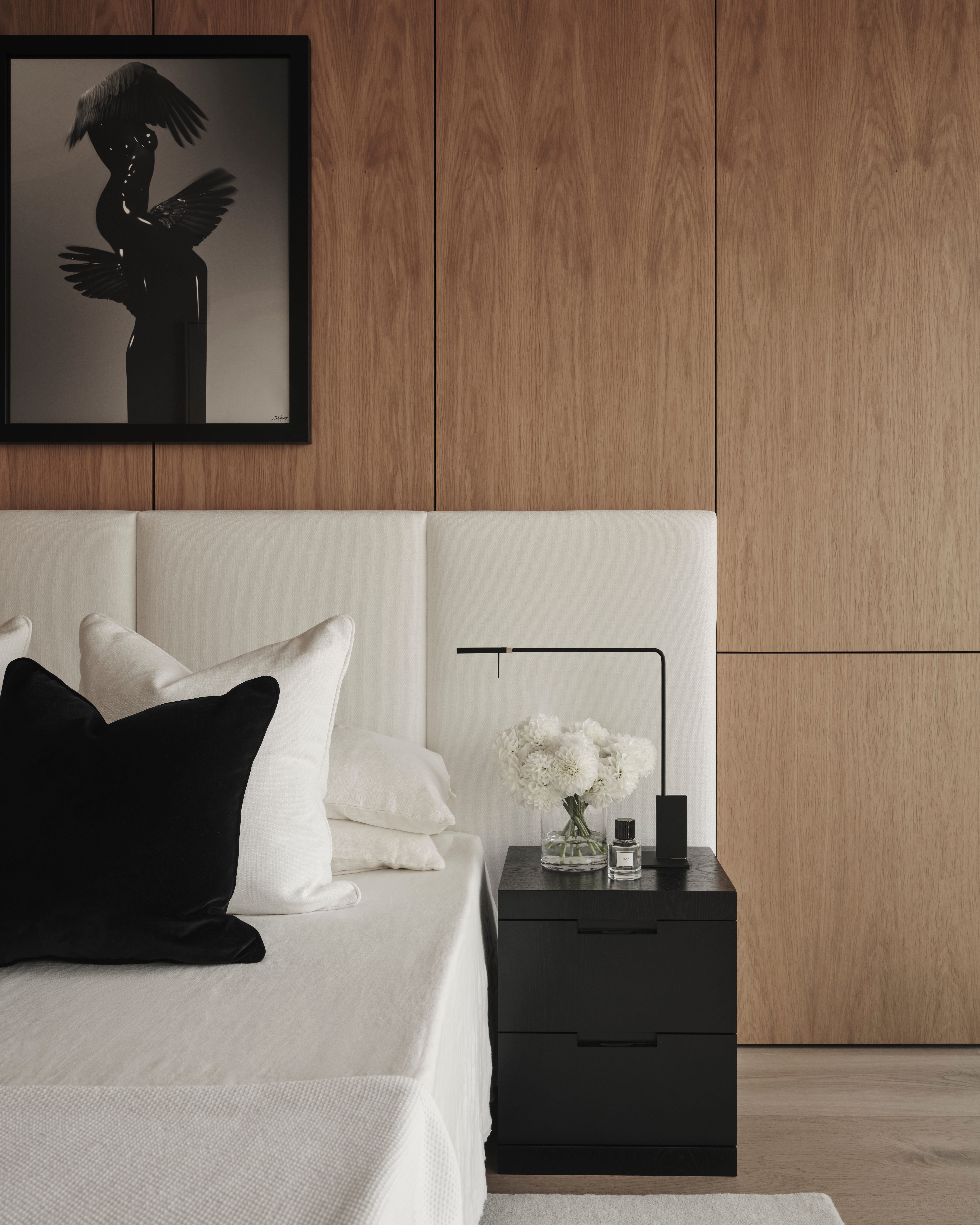 The interiors feature curated furniture, collectible design pieces, and museum-quality art. Hand-selected details include cashmere rugs, silk bedding, Baccarat crystalware, and a 350-bottle Penfolds Grange wine cellar.