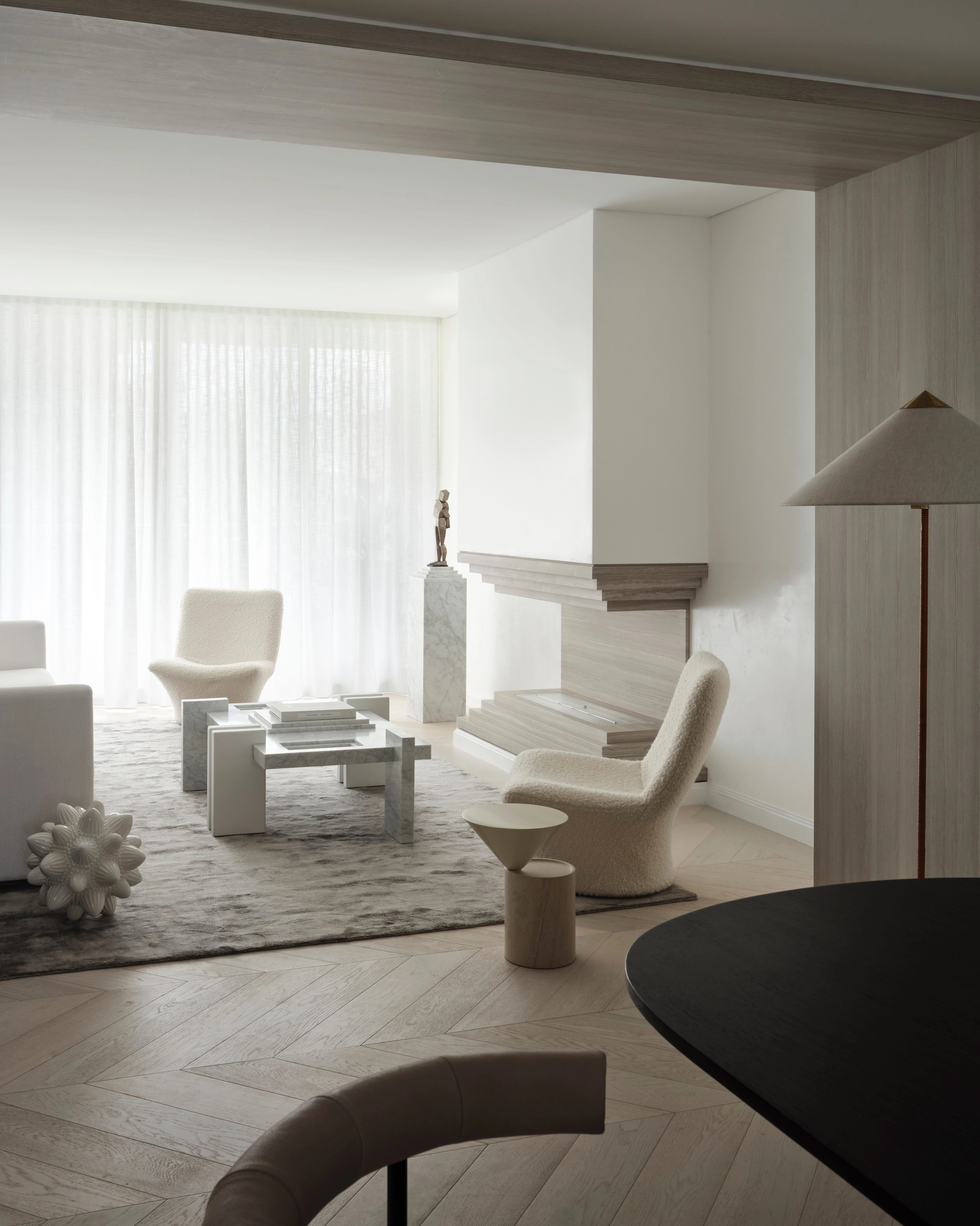 The art of fine tailoring informs every aspect of this private multi-level pied-à-terre, where a dedication to craft, beauty, and tradition underpins a timeless interior scheme. Much like a meticulously constructed garment, the design is composed through a restrained yet expressive use of materiality and texture, resulting in a space that feels both enduring and contemporary.