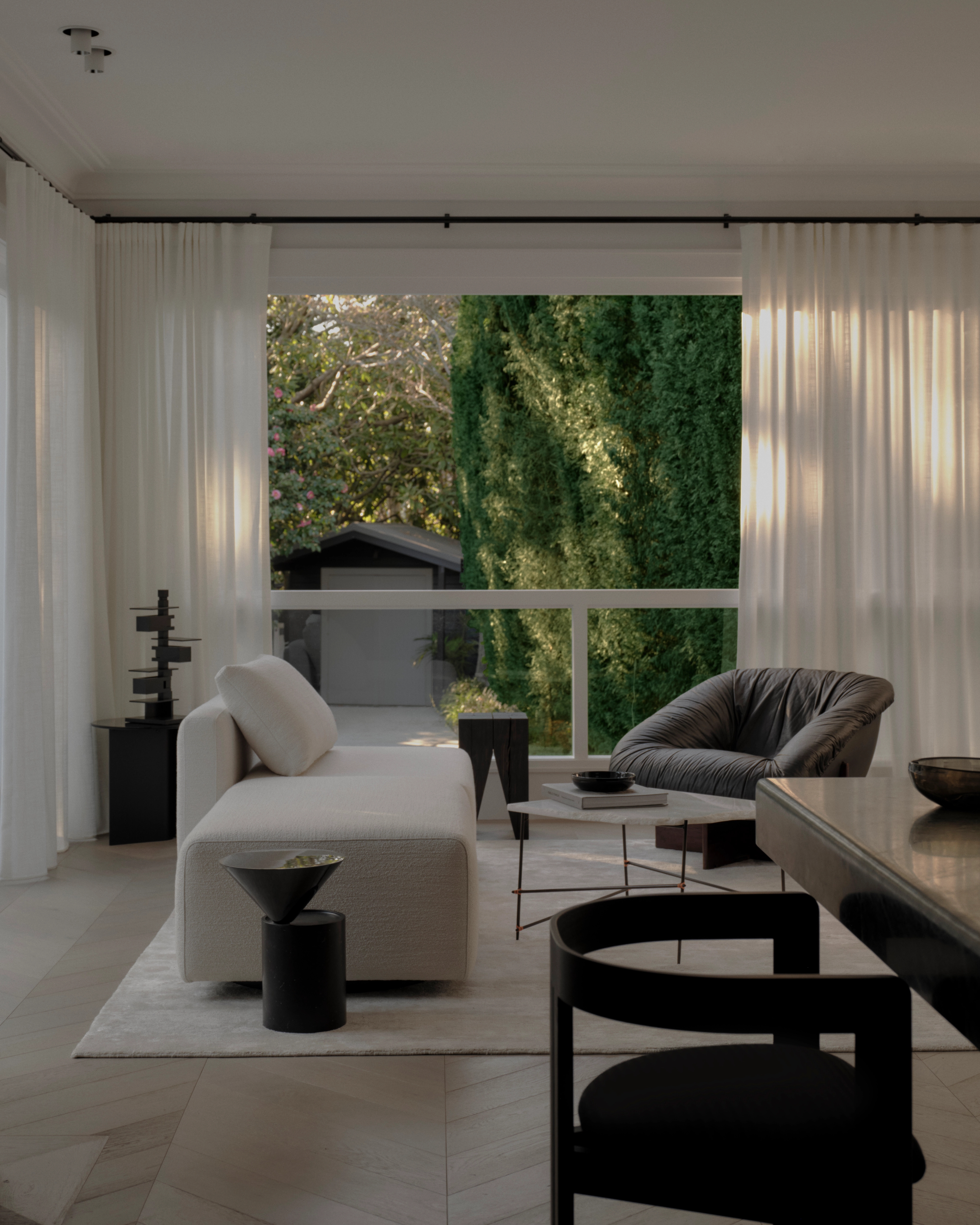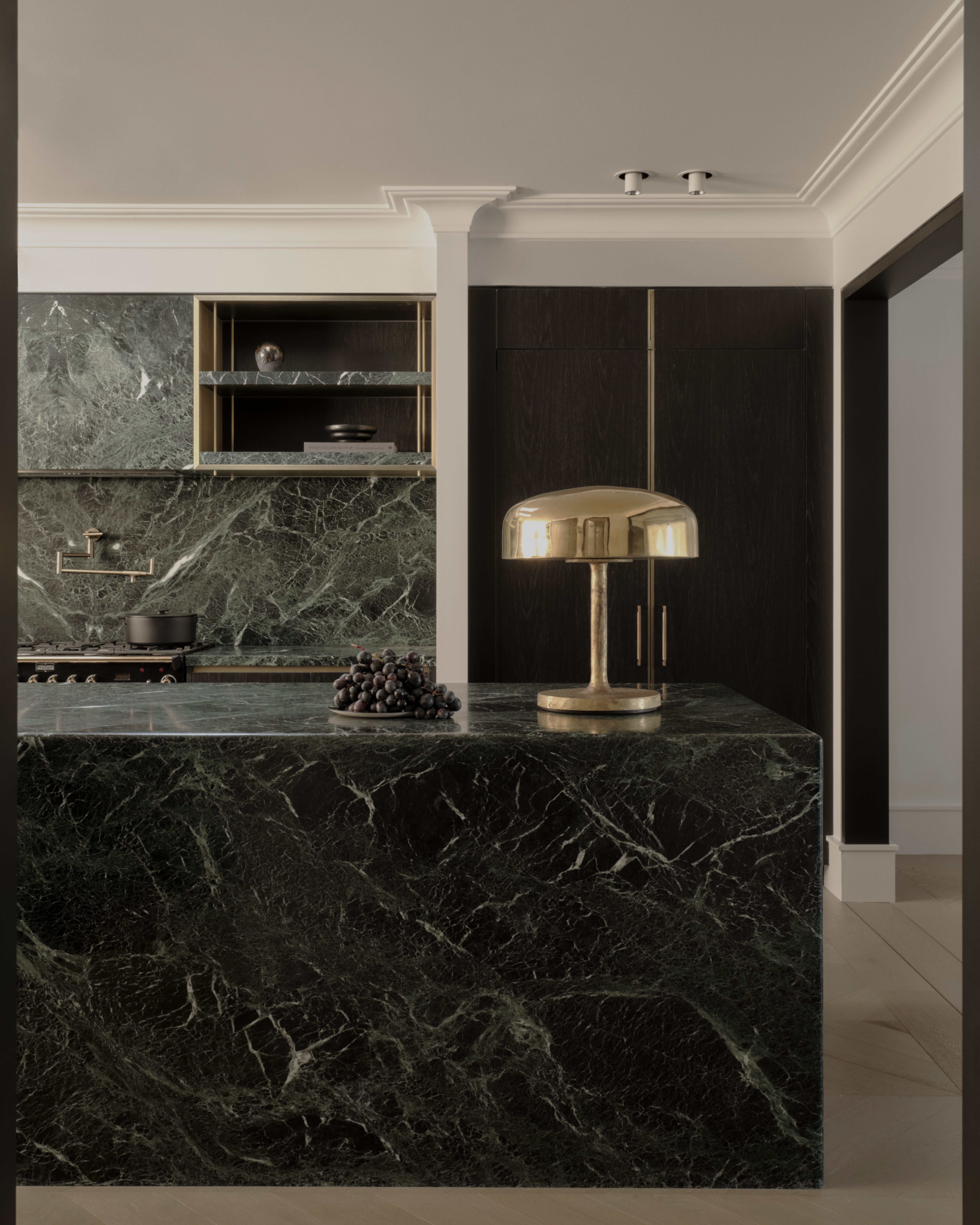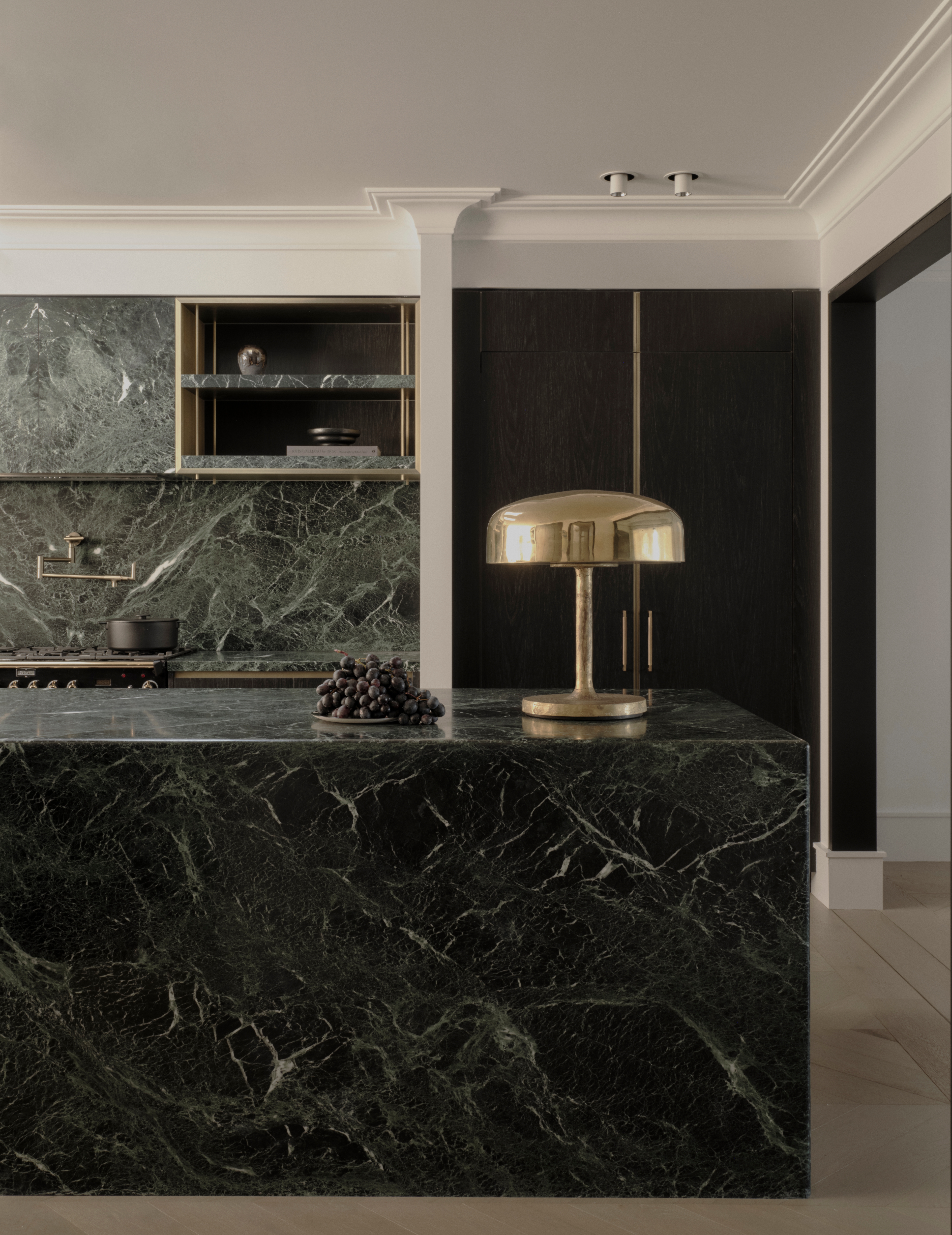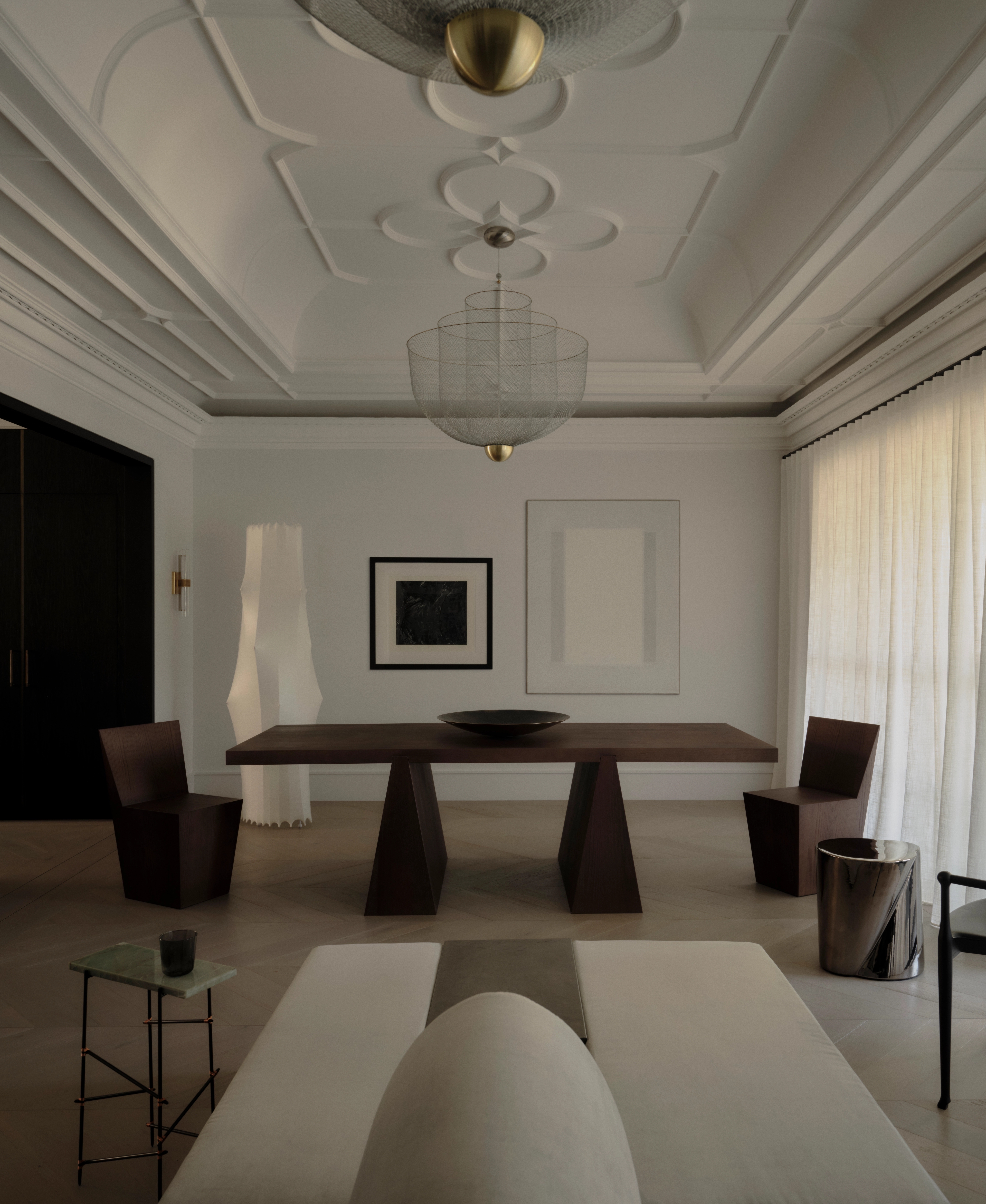Drawing from the iconic geometry, symmetry, and opulent materials of the Art Deco era, the design introduces a subtle yet unmistakable layer of glamour. Clean, streamlined forms are juxtaposed with rich, tactile surfaces, while metallic accents and reflective finishes orchestrate a dynamic play of light and shadow throughout the space. Sculptural lighting, bespoke fixtures, and carefully detailed joinery serve as statement pieces—honouring the grandeur of the past while embracing contemporary simplicity and comfort.